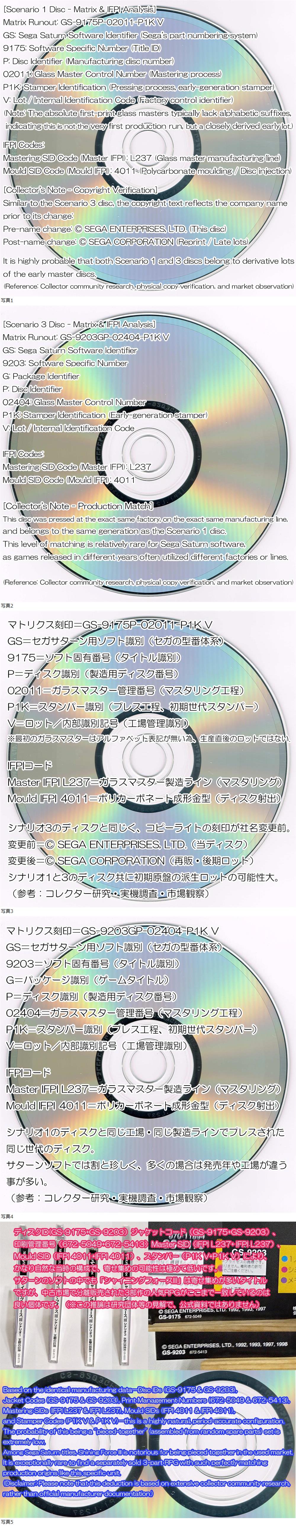 また、中古市場で非常に多い「異なるロットを適当に組み合わせた寄せ集め(ニコイチ)」リスクを完全に払拭するため、ディスクのマトリクス刻印およびSIDコード等の解析画像も下部に掲載しております。