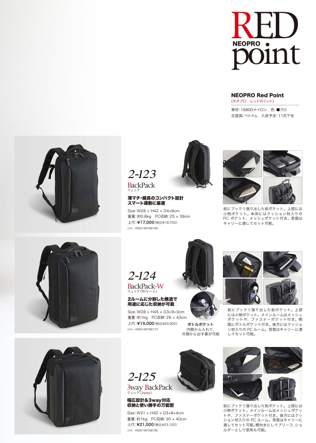 2026NEOPRO RED POINT【2-124】リュック(Wルーム) 收藏