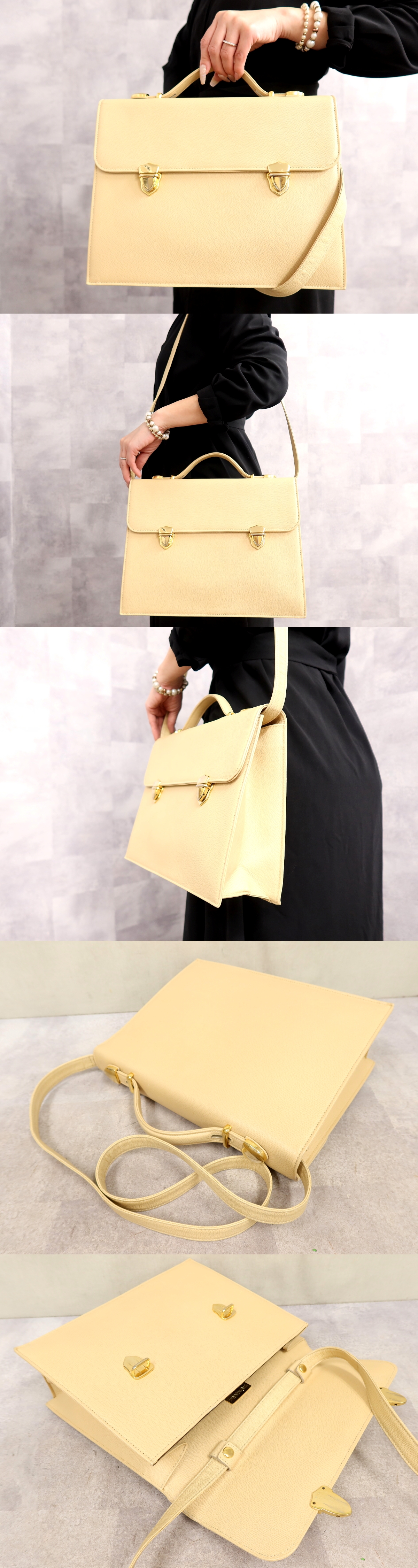 ●超美品●YSL Yves Saint-Laurent イヴ・サンローラン●カーフ レザー 本革●2way ハンド バッグ●ベージュ●ゴールド金具●B5●Js66639 收藏