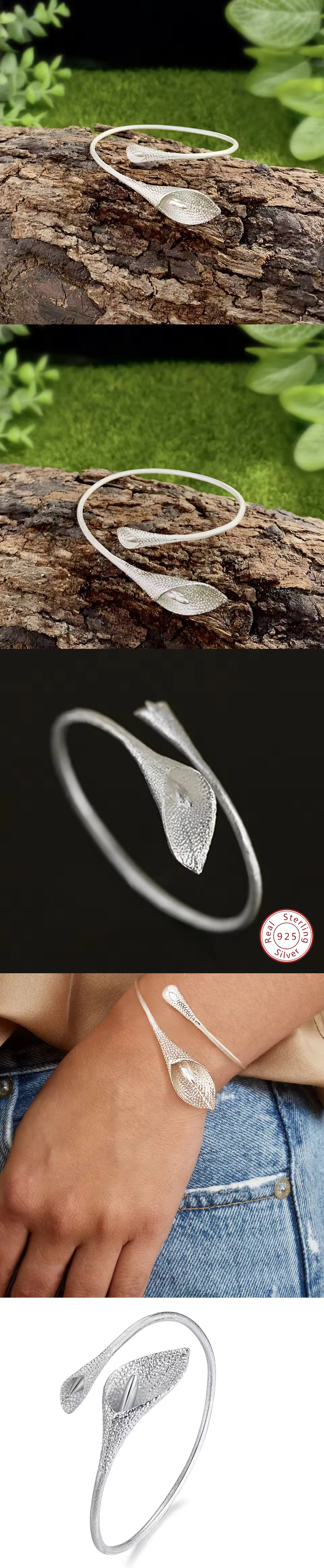 ジュエリー レディース オリジナル 925スターリングシルバー デザイナー ハンドメイド エスニック ロータス バングル ブレスレット 收藏