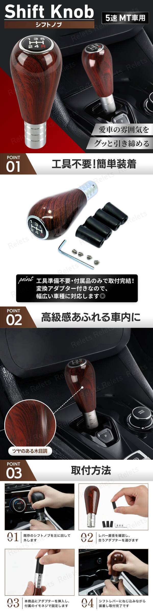 シフトノブ ウッド調 マニュアル 5速 MT車 ジムニー カスタム カー用品 レトロ 変換アダプター付き 木目調 旧車 軽トラ ミッション Bタイプ 收藏