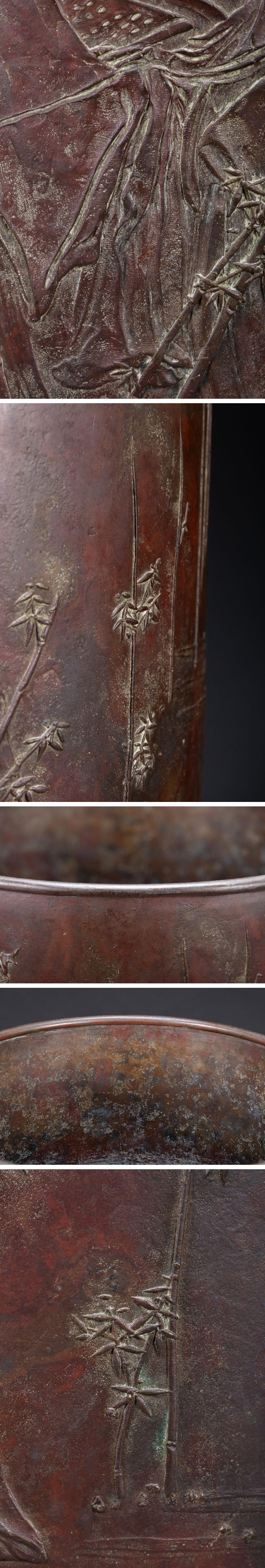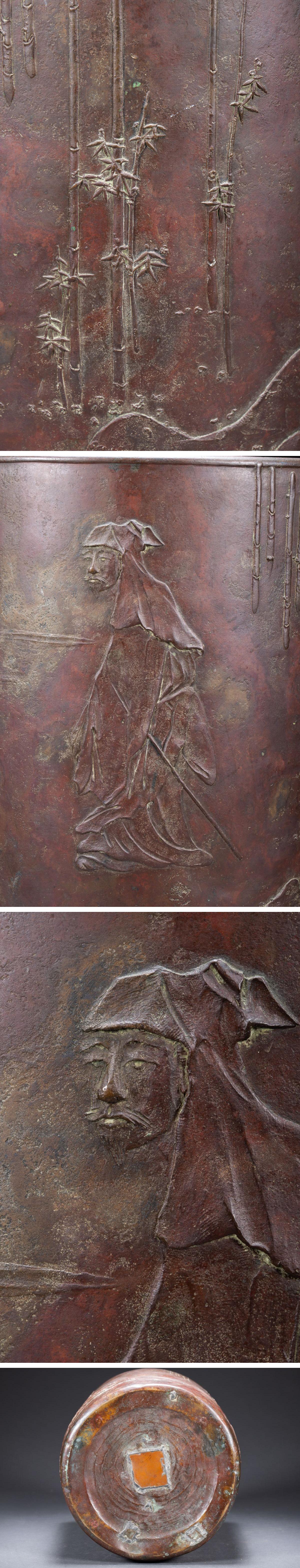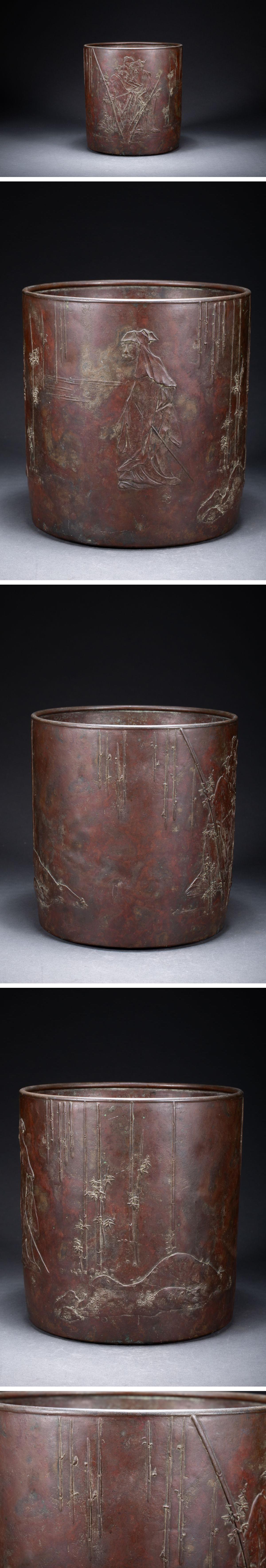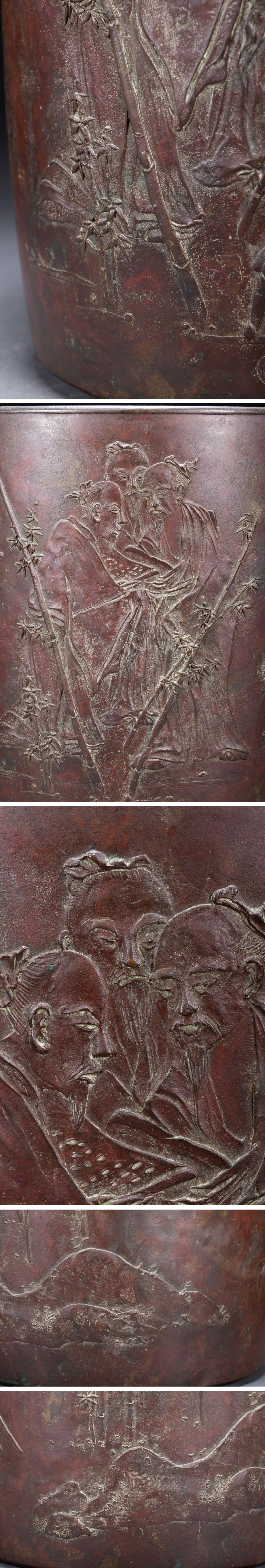 【雲錦】1円から 江戸~明治時代 宣徳銅 竹林七賢圖筆入 古書道具 時代物保証 古美術 骨董品7L6-471S 收藏