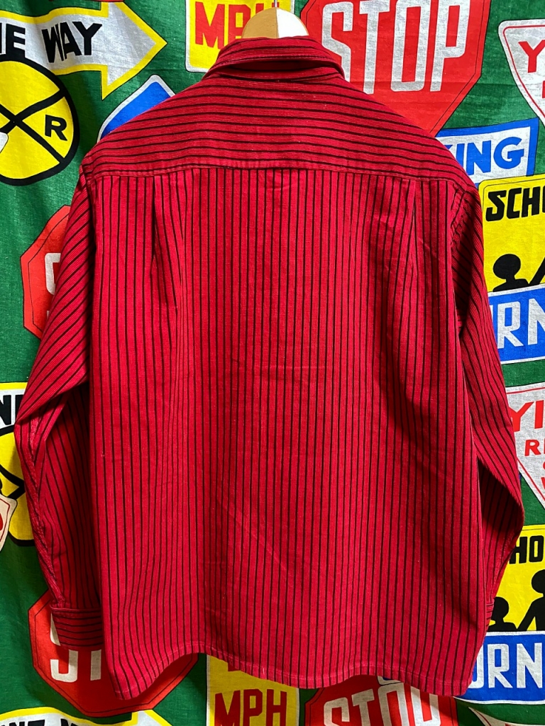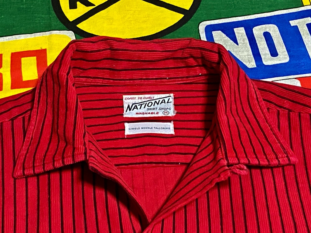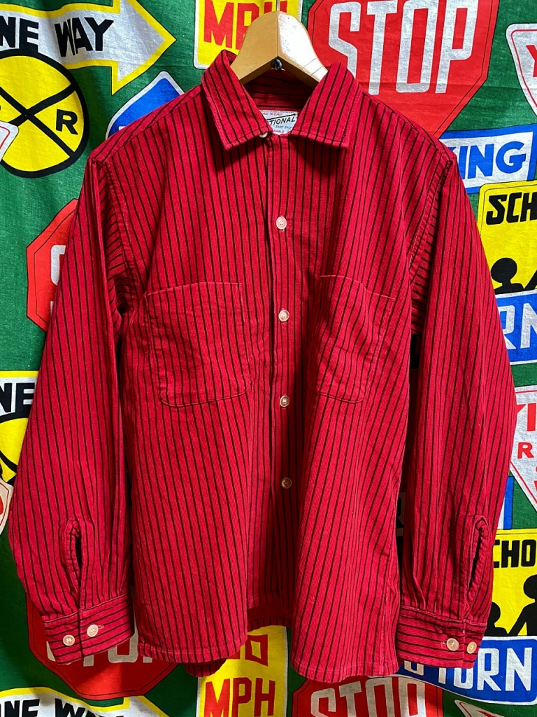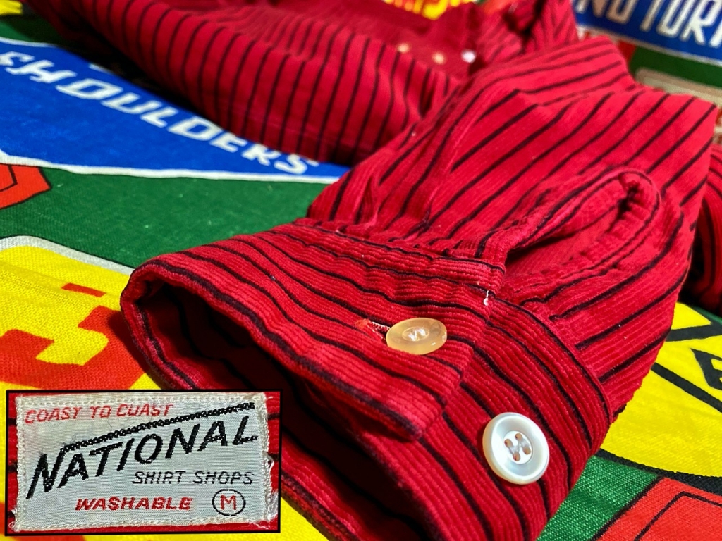 ★珍しいプリントストライプ★Made in USA製アメリカ製NATIONALナショナルビンテージプリントコーディロイシャツ50s60s50年代60年代赤×黒M 收藏