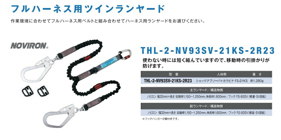 藤井電工 ノビロン THL-2-NV93SV-21KS-2R23 フルハーネス用ツインランヤード NOVIRON 049484 。 收藏