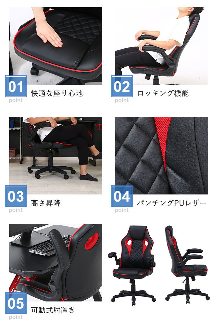 | オフィスチェア レーシングチェア ゲーミングチェア 高さ調節可能 ロッキング機能付き キャスター付き デスクチェア レザー 合皮 ブルー グレー レッド チェア イス いす 椅子 在宅勤務 テレワーク 在宅ワーク 自宅勤務 学習チェア ハイバックチェア ゲーム オフィス 回転イス |