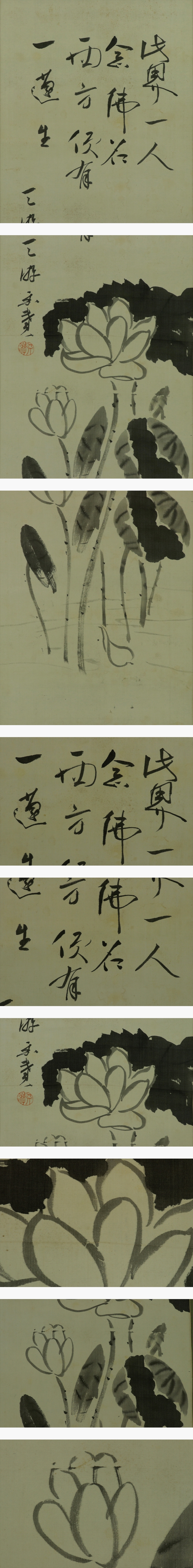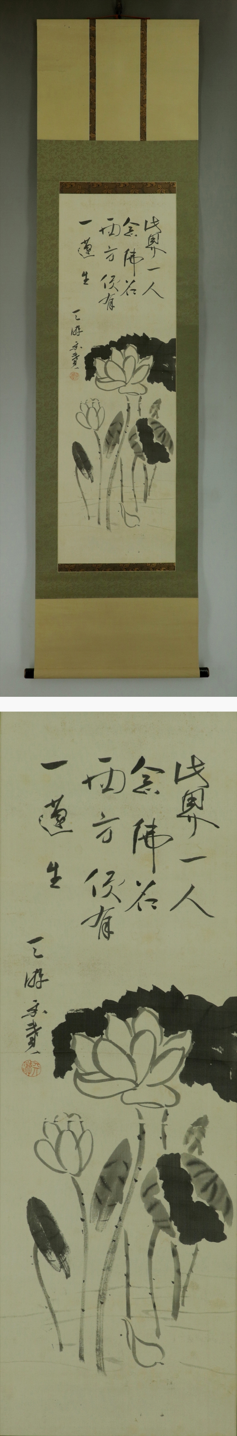 | №2303152 希少【真作】鈴木法琛【蓮】◆絹本◆合箱◆掛軸 | |