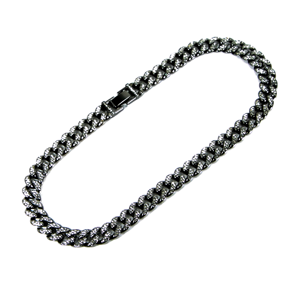 マイアミキューバン チェーン ネックレス 45㎝ 13㎜ 男女兼用 ブラックカラー 中折れバックル 新品 收藏