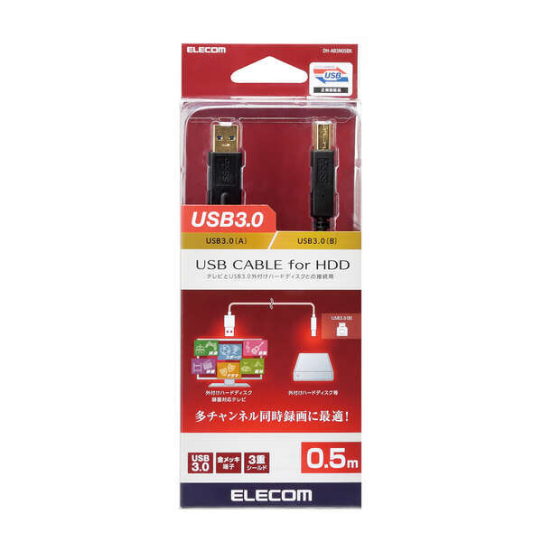USB3.0ケーブル [A-B] 0.5m 外付け用HDD録画対応テレビと外付けHDDなどの機器を接続できる USB3.0正規認証品: DH-AB3N05BK 收藏