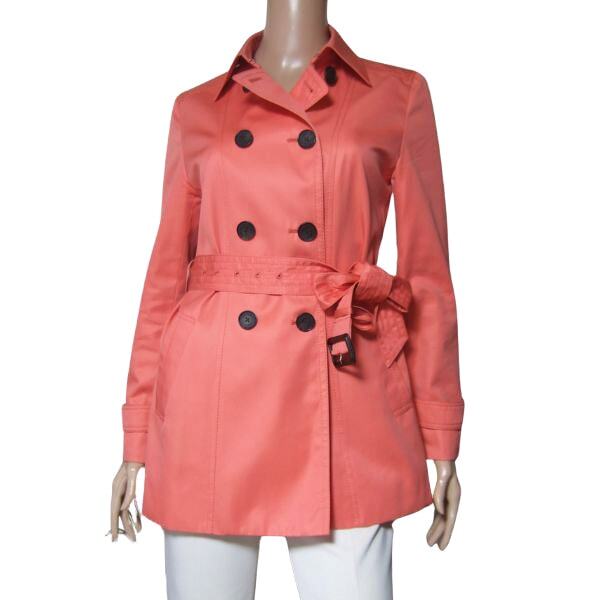 美品/J.プレス ジェイプレス J PRESS トレンチコート 表記 11号 L 相当 サーモンピンク レディース 春 秋 アウター 綿混 コットン ベルト 收藏