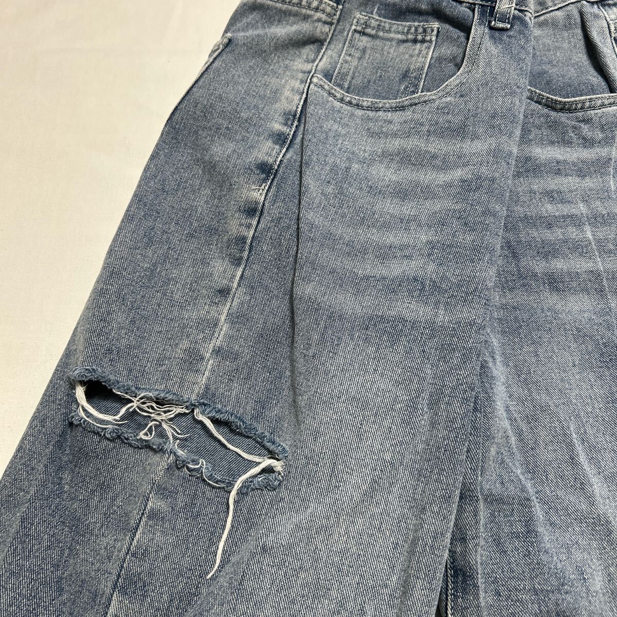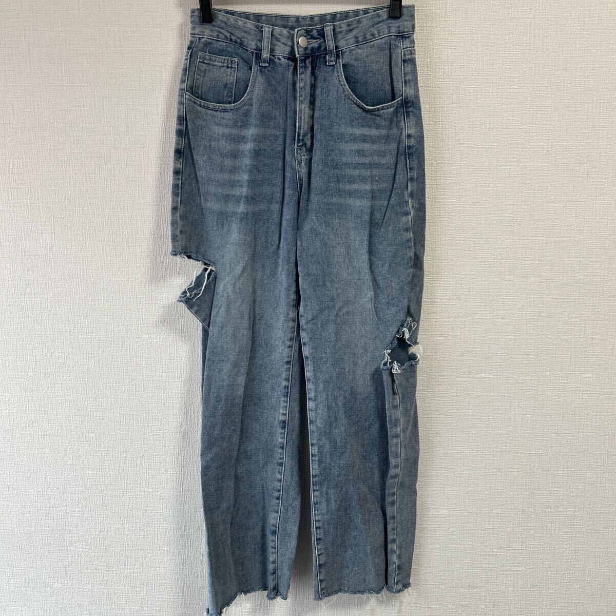 Dazy ダメージウォッシュドデニムパンツS ストレート デイジーGパン ユーズド加工 used ジーンズ 洗い加工 セクシー トレンド カットオフ 收藏