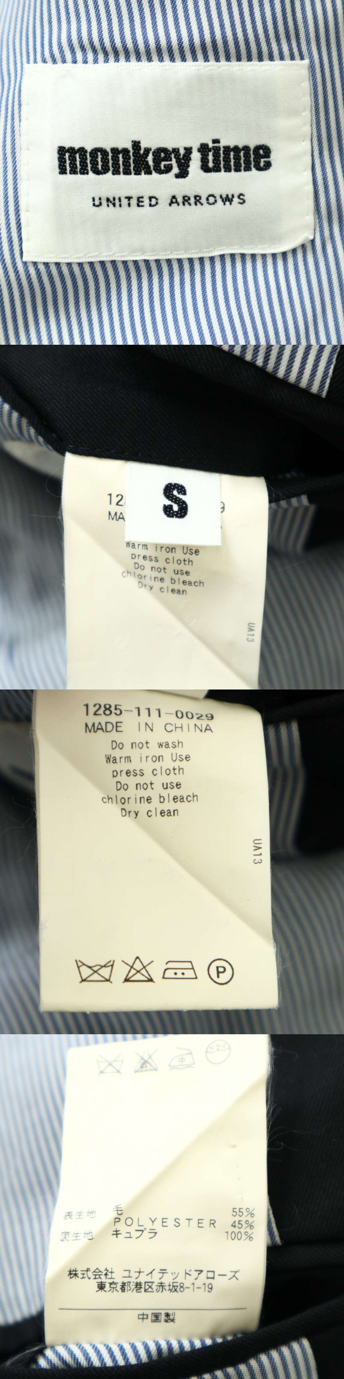MONKEY TIME モンキータイム ユナイテッドアローズ 通年 総裏 ウール★ テーラード ジャケット ブレザー Sz.S メンズ 黒 收藏