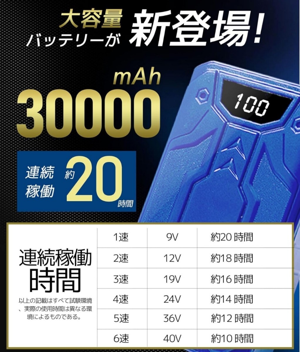 新品!即日発送! 40V 30000mAh ファンバッテリーセット 空調作業服 6段階 大風量 空調服 熱中症対策 收藏