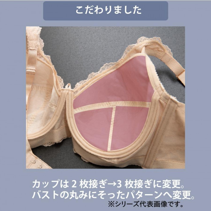 | 気になる脇肉をシッカリサポートする脇高設計を見直し、脇のぷよ肉をカバーできるようになりました。バストの横広がりをシッカリサポートするためにストラップ前側にパワーネットを仕様。さらにカップの丸みも追及し、体型やサイズによるストラップ落ちを解消するためにバックU字設計となっています。 バックベルトにはレースとパワーネットの2重仕様と脇ボーンで脇から背中にかけてシッカリサポートしてくれます。背中側をシッカリサポートするためにレース上部にパワーネットをワサにすることでスッキリとした背中のラインへと導いてくれます。またワイヤーのあたりを軽減するためにフロント部分にキャップ付きワイヤーを採用。 |