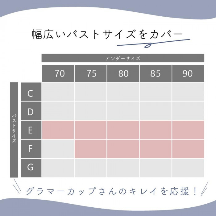 | 仕様 | ・バスト/アンダーサイズ:E80 ・フルカップタイプ ・カップ受け有り ・胸元にパールリボン1個 ・ワイヤー、ボーン入り ・ホック(2列3段) ・手洗い可 |