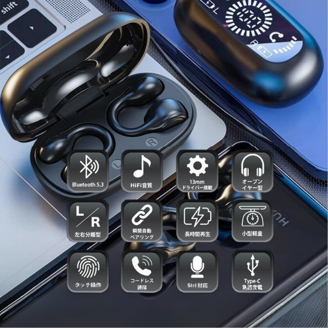 【瞬間ペアリング対応】耳掛け式 ワイヤレスイヤホン Bluetooth5.3 空気伝導 LED表示 超軽量 防水 人気 おすすめ 收藏
