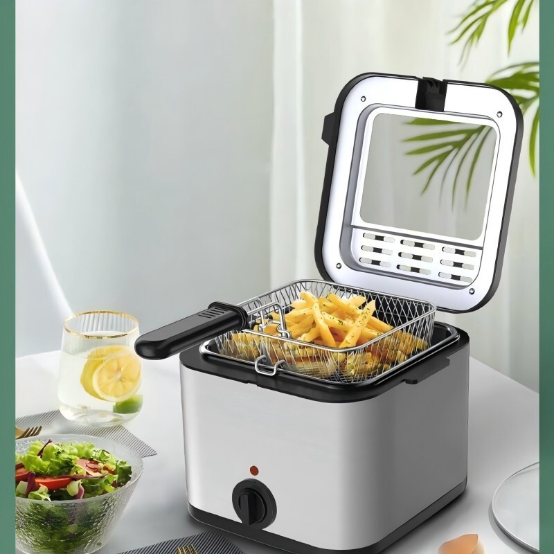 新入荷上質2.5L電気フライヤー 家庭用 3層断熱保護 多機能卓上フライヤー ステンレス 火傷防止設計、ワンボタンスタート、コンパクトで便利 收藏