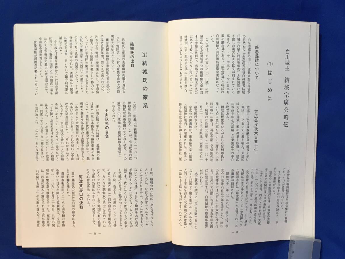 AM625サ◎昭和62年 非売品 「白川城主 結城宗廣公略伝」 六百五十年祭記念 川瀬榮一 結城氏の家系/討幕運動/建武の新政/奥州軍の上洛 收藏