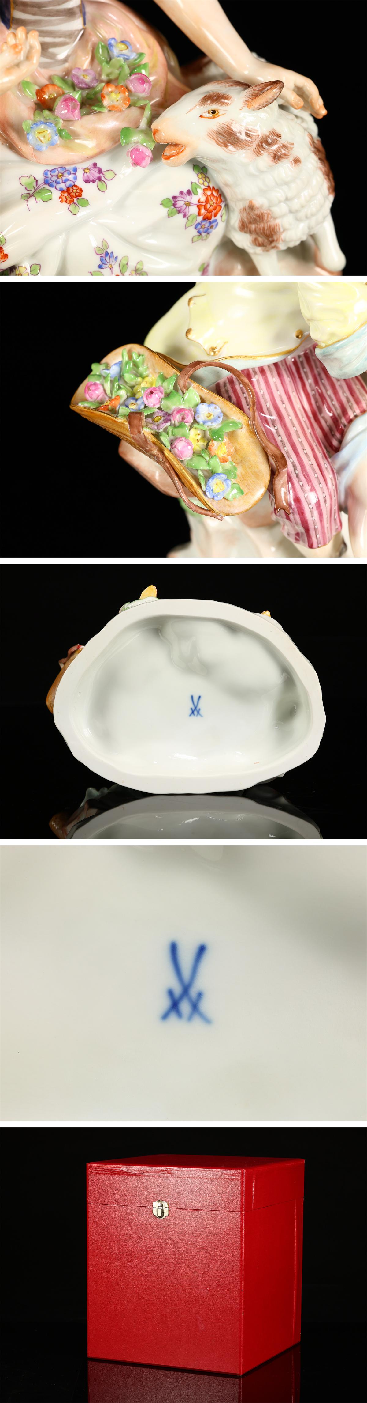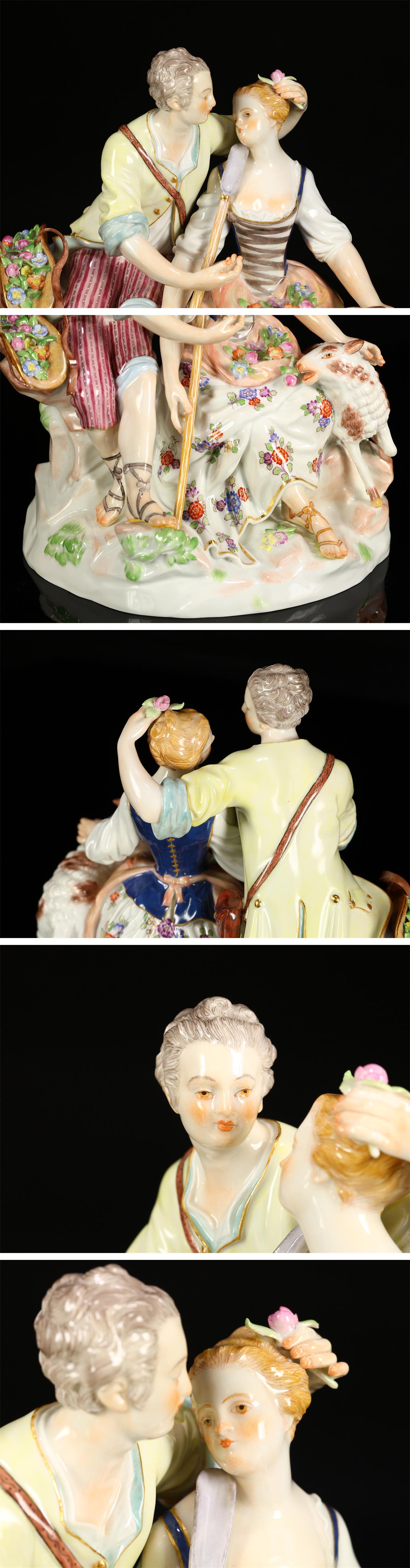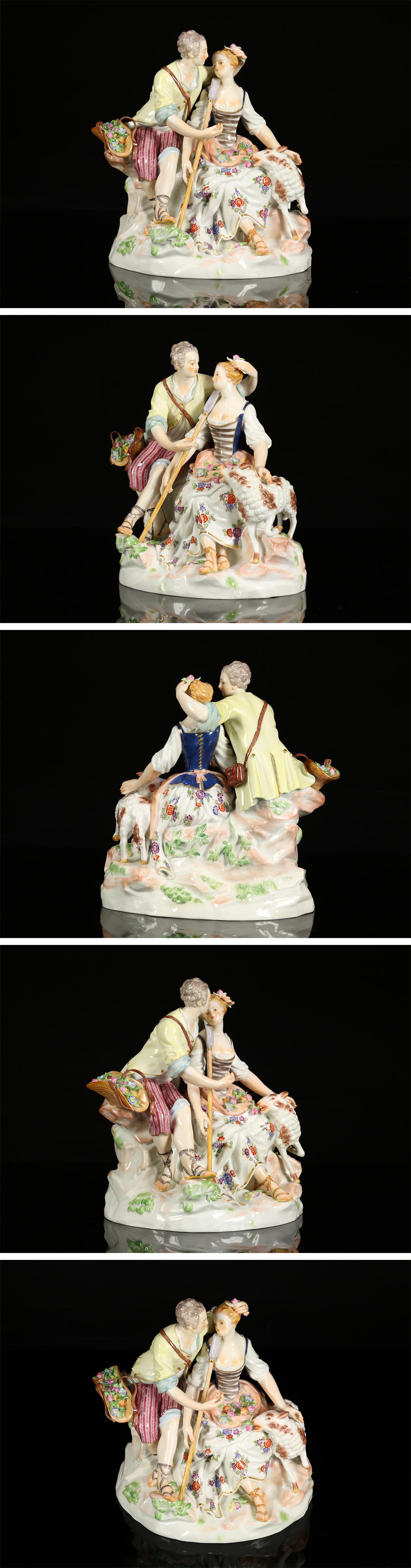 【吉】CM816 MEISSEN 【マイセン】 色絵磁器 夫婦 置物 高19㎝ 箱付 時代の小ホツあり 本物保証品Z! 收藏