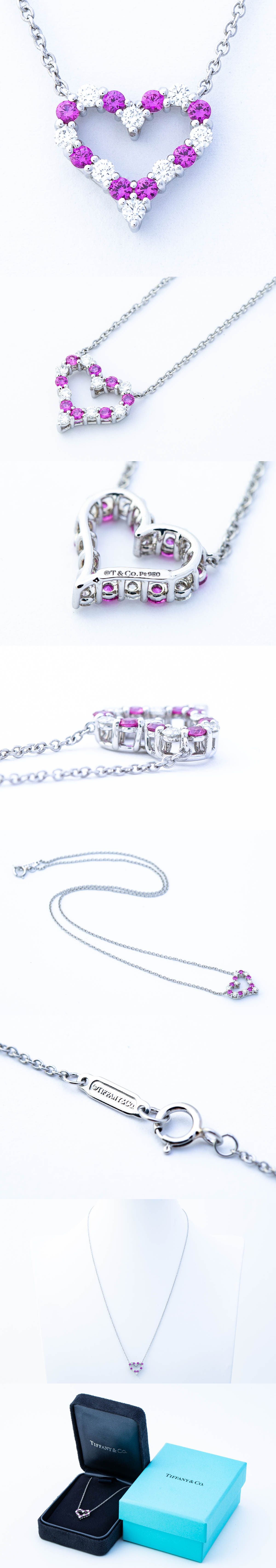 【新品仕上済】TIFFANY&Co. ティファニー センチメンタルハート Pt950 ピンクサファイア ダイヤモンド ネックレス ケース付 #36561YR 收藏