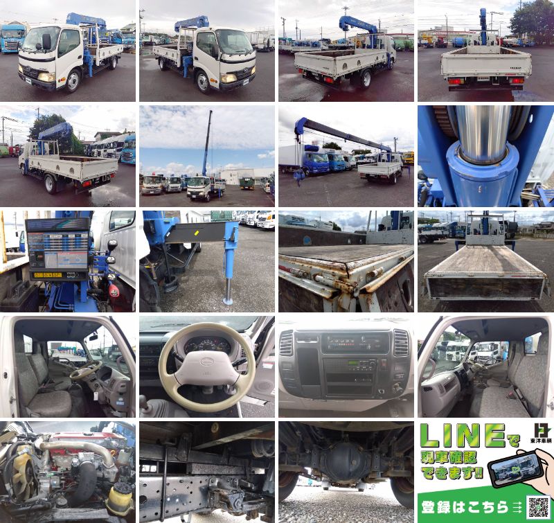 クレーン付 平ボディ 上物:タダノ製 上物年式違い 4段ブーム ラジコン付(無線) フックイン 2.6t吊 標準ロングボディ 積載2t 荷台寸法:353×181×38 荷台床:木張り アオリサポート付 ロープ穴付 走行8.2万km 6速ミッション 排ガス規制適合(各都市登録&乗り入れ可) 準中型(7.5t未満)免許対応車 タイヤサイズ:205/70R17.5 |