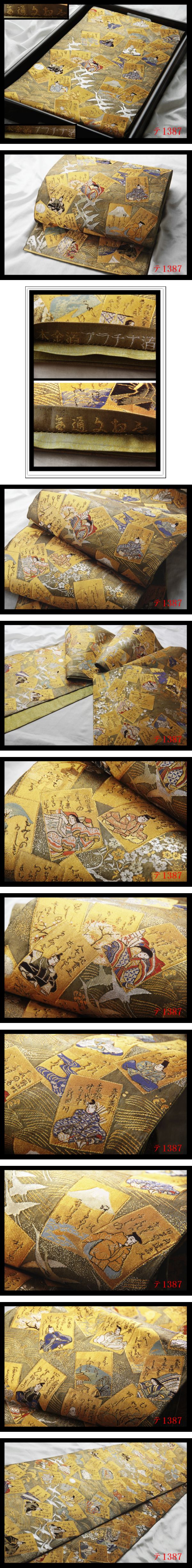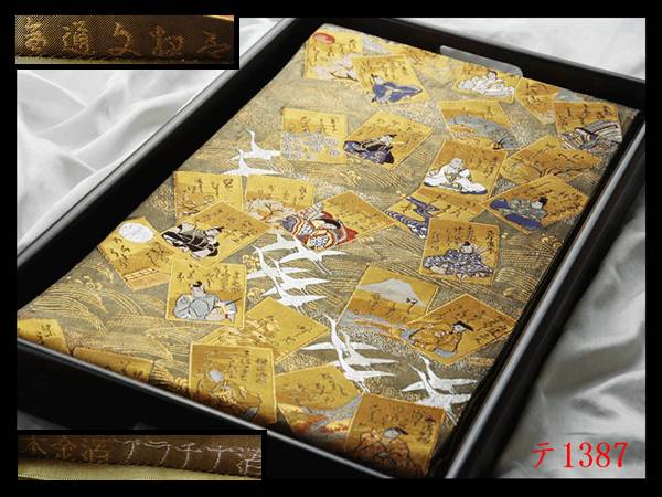 蔵【テ1387】西陣逸品 本金箔プラチナ箔 源氏物語 気品豊かに 正絹純金糸全通高級美術袋帯 ◇検◇簪着物名古屋帯和装小物帯締め 收藏