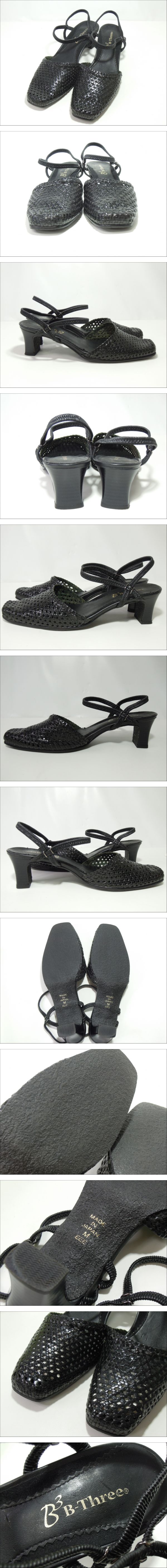 B3 B-Three ビースリー メッシュストラップパンプス サンダル ミュール Mサイズ EEE 黒 ブラック