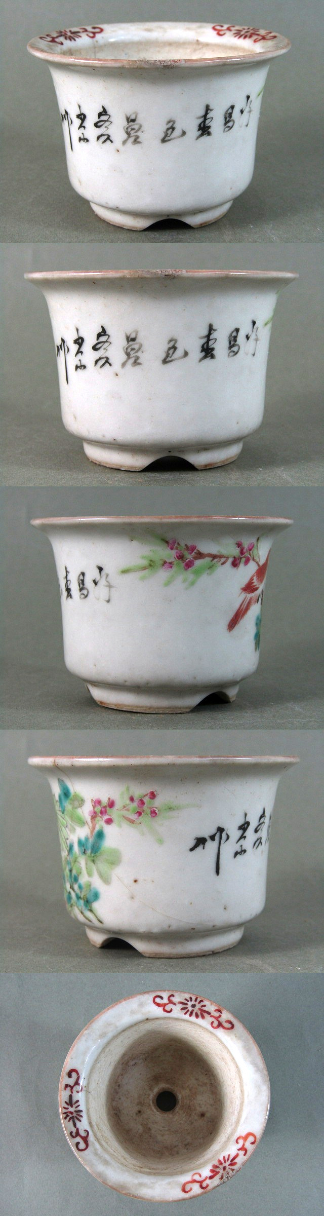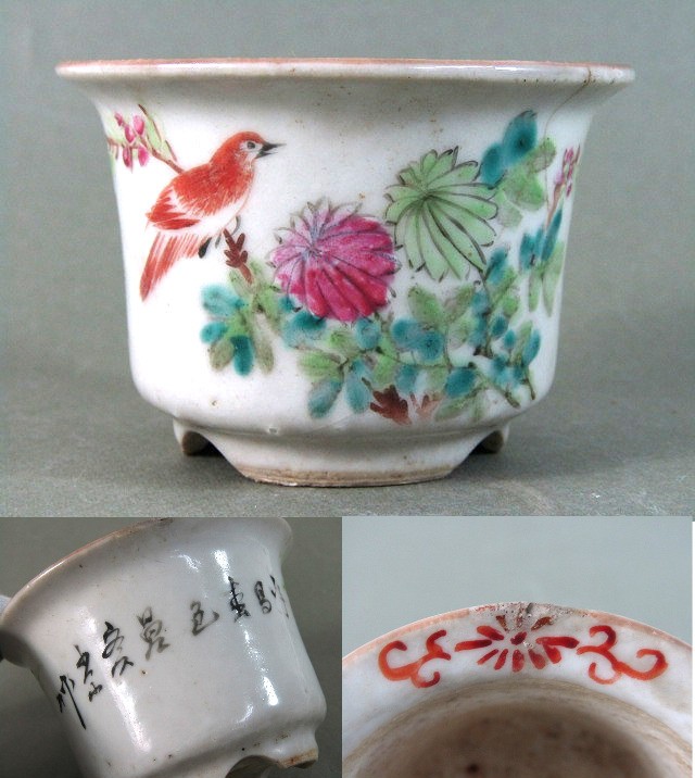 中国 支那鉢 色絵 花鳥文 間口約5.7cm 小品盆栽鉢【説明欄に詳細写真有り】の出品です。
