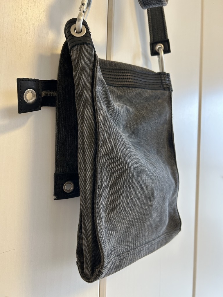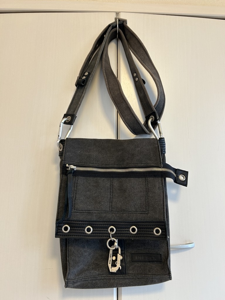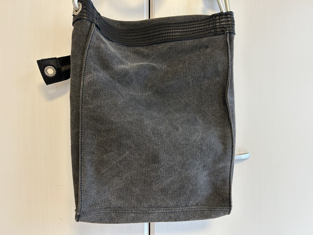 ・数回しか使用していないので、比較的汚れは少ないです。ショルダーが本体より少し色あせしている感じもありますが、元々こんな感じだったような気もします。また、フタの部分が本来はピストル形のカラビナとつながっていたのですが、留め具が外れてしまい丸型の部分とカラビナ部分が別々になってしまっています。写真でご確認いただき、ご理解いただいた上でのご入札をお願い致します。外側、内側共にポケット1つあります。ショルダーは長さ調節が可能です。 ・サイズ:横24 縦33 マチ6 (素人採寸ですので、多少の誤差はご了承下さい。) ・素 材:不明です。 |