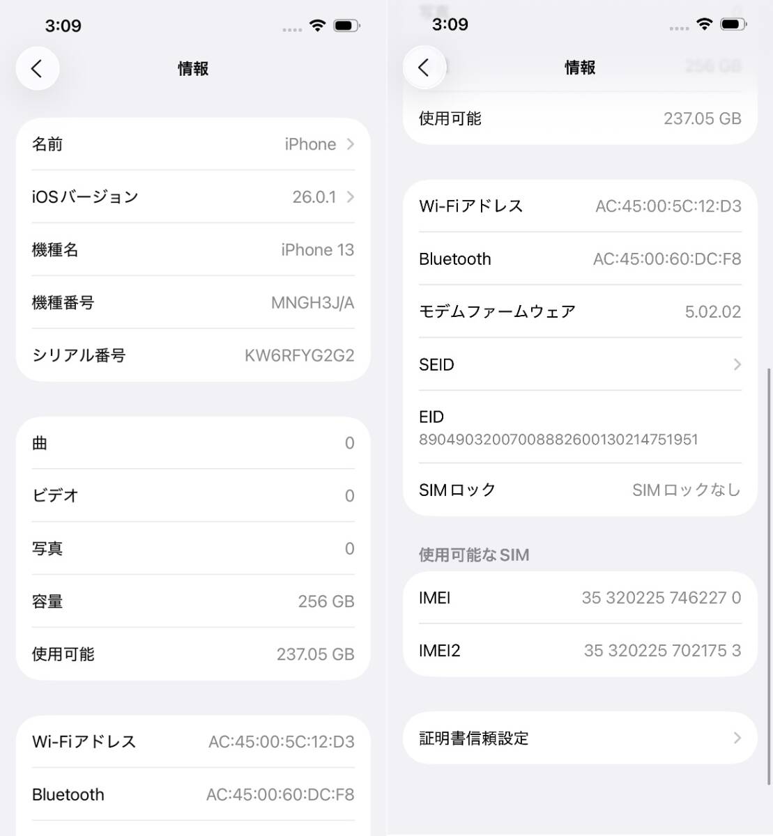 | 製造番号 | 353202257462270 |