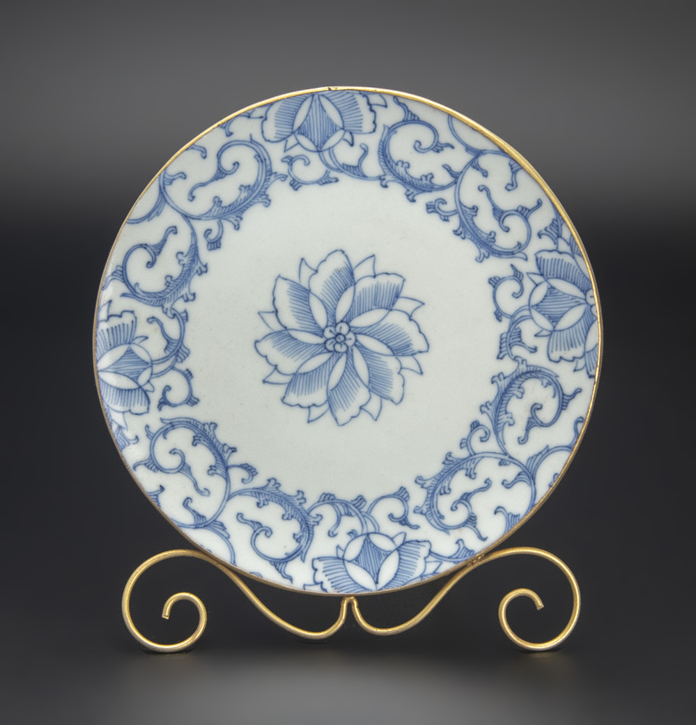 清 青花花卉紋盤 大清嘉慶年制款 文物商店 火漆印 中国 古美術 收藏