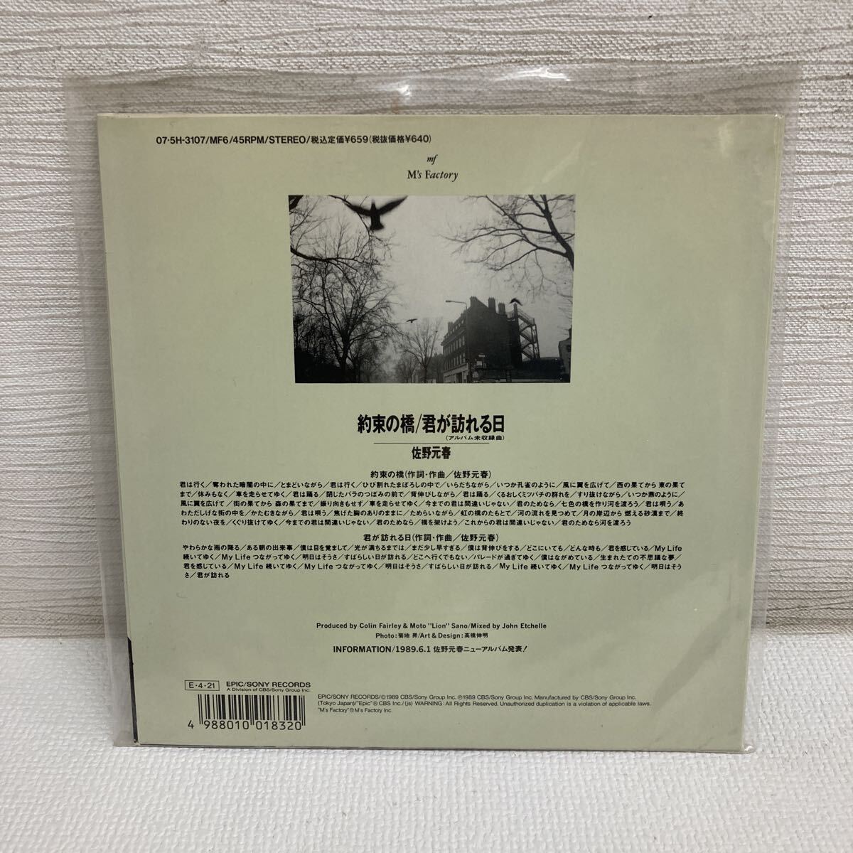 I1019A3 佐野元春 約束の橋 / 君が訪れる日 EP レコード 国内盤 07・5H-3107 Ms Factory 收藏
