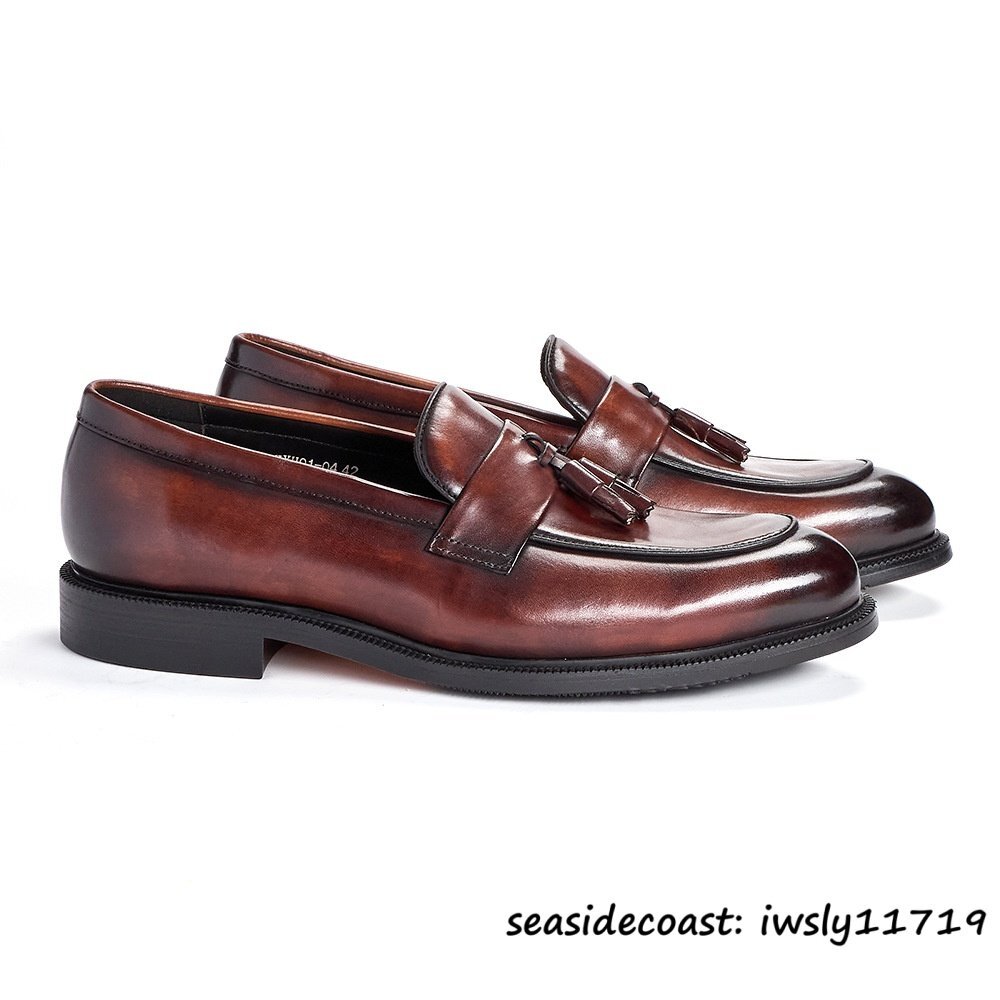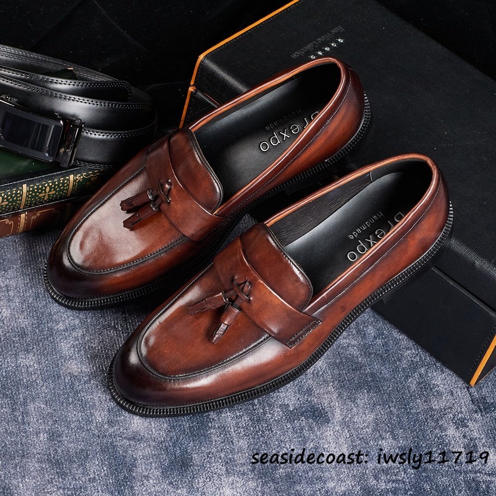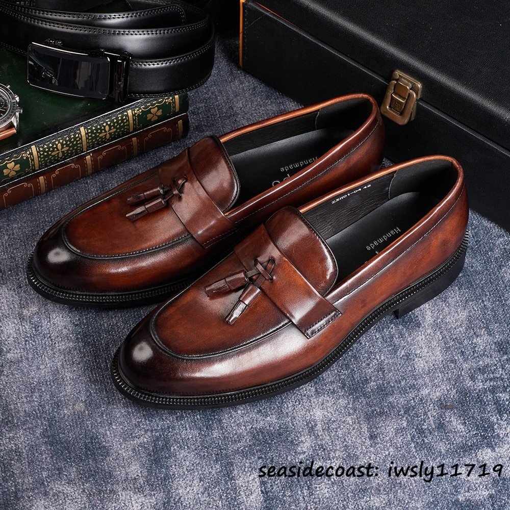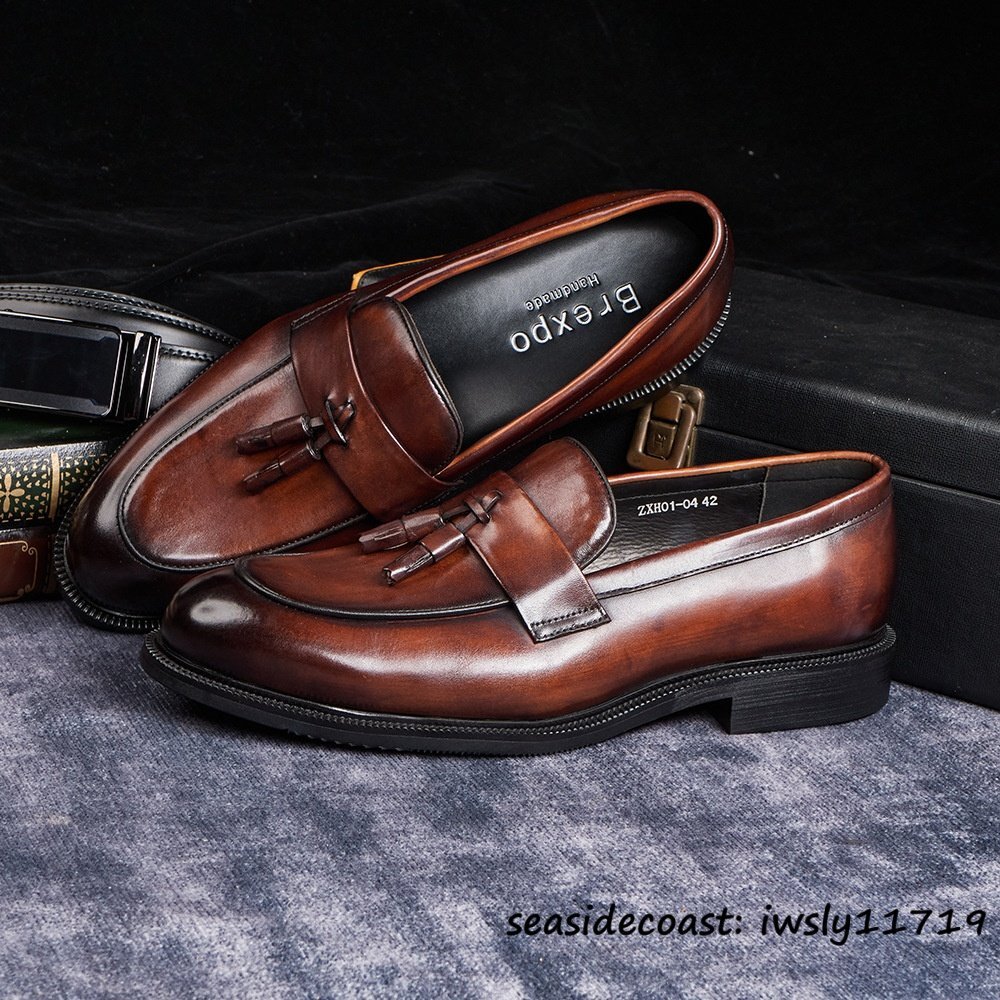 定価10万超■レザーシューズ メンズ タッセルローファー 本革 職人手作り ビジネスシューズ 紳士靴 冠婚葬祭 牛革 革靴 ブラウン 27.5cm 收藏