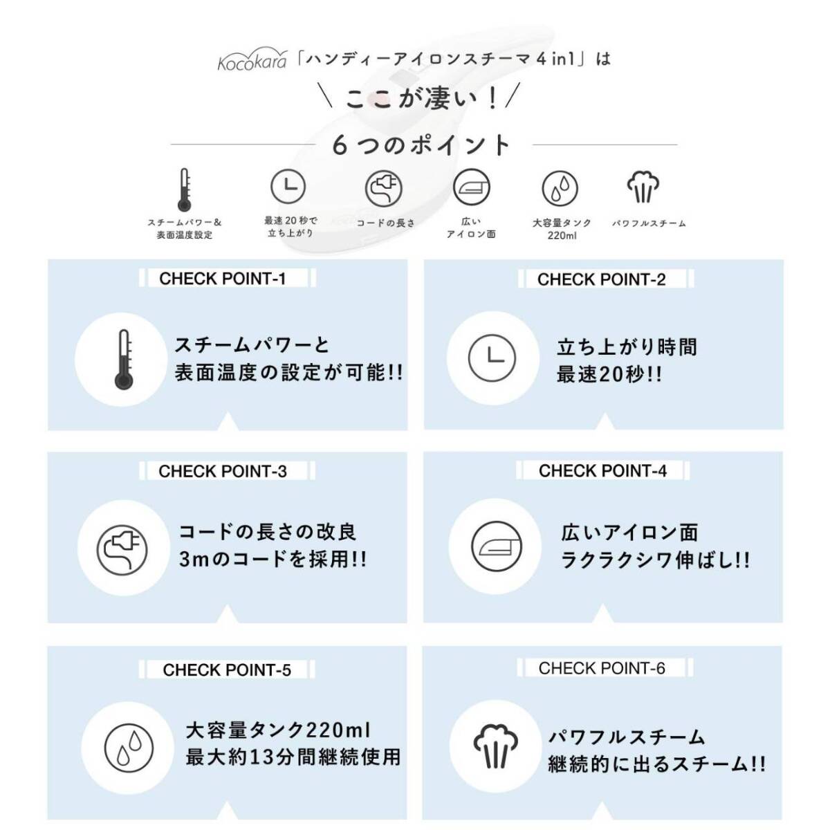 スチームアイロン 20秒立ち上がり 高速加熱 220ml大容量 グレー 收藏