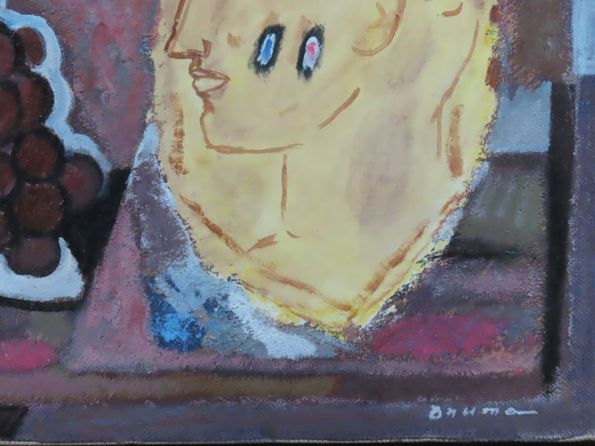 穂高「真作」 国画会会員 大沼映夫 「葡萄と横顔のある静物」油彩 8号 梅田画廊シール 收藏