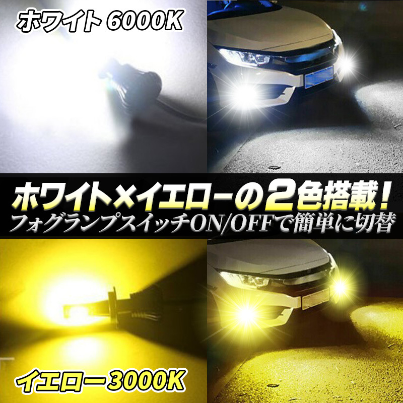 LED 2色切り替え フォグランプ 2個 ホワイト イエロー 3000K 6000K H8 H9 H11 H16 2400lm ヘッドライト 白 黄色 バルブ 切替 防水 010 收藏