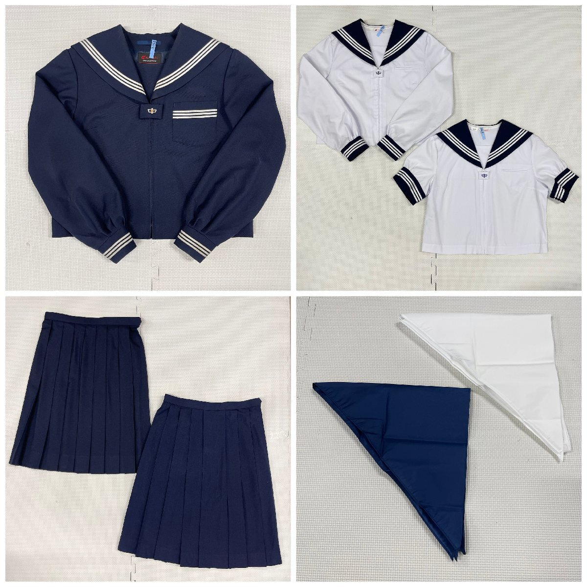 [U2122/Y]福島県 本宮市立 本宮第一中学校 7点 /指定品/セーラー:165A/冬夏スカート:W69丈60/白紺スカーフ/夏冬/合/長袖/半袖/白3本/学生服 收藏