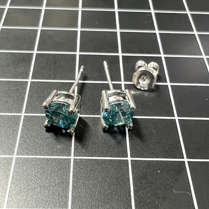 B453 ピアス レディース メンズ ジルコニア ブルーグリーン 4爪 シンプル s925 シルバー 青緑 收藏