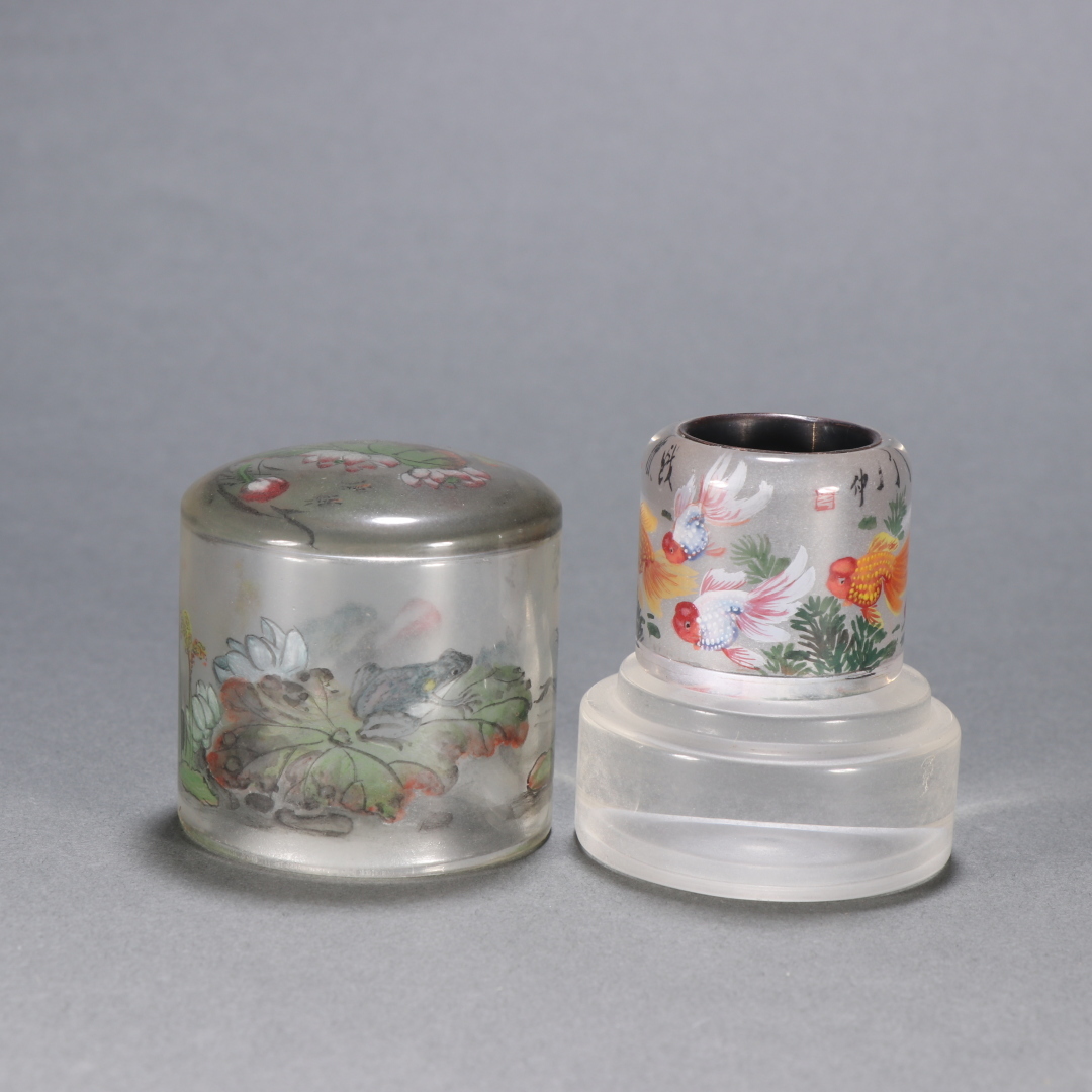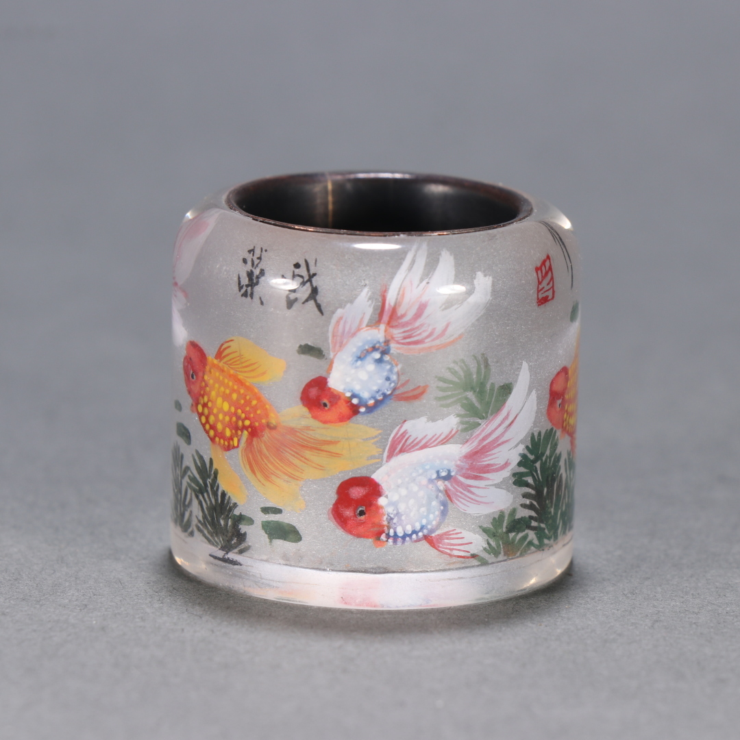 ◆御泓軒◆『清朝時代 瑠璃彫 金玉満堂包銀板指 套盒 丁二仲款』極細工・古賞物・中国古玩・中国古美術 收藏