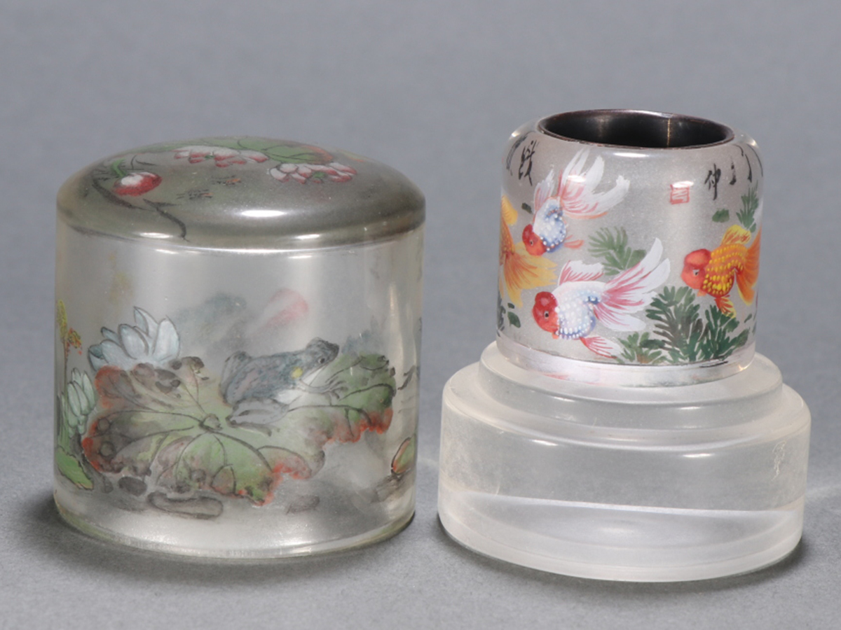 ◆御泓軒◆『清朝時代 瑠璃彫 金玉満堂包銀板指 套盒 丁二仲款』極細工・古賞物・中国古玩・中国古美術