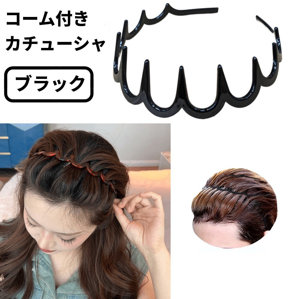 【vaps_7】コーム付き カチューシャ ブラック くし付 前髪 まとめ髪 髪留め レディース メンズ ヘッドバンド ヘアバンド 送込 收藏