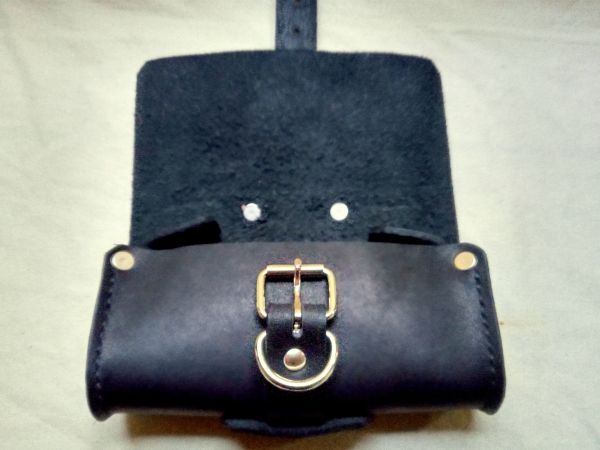 スペイン産ビンテージブラックヌメ革コンパクトバッグ(訳あり 收藏