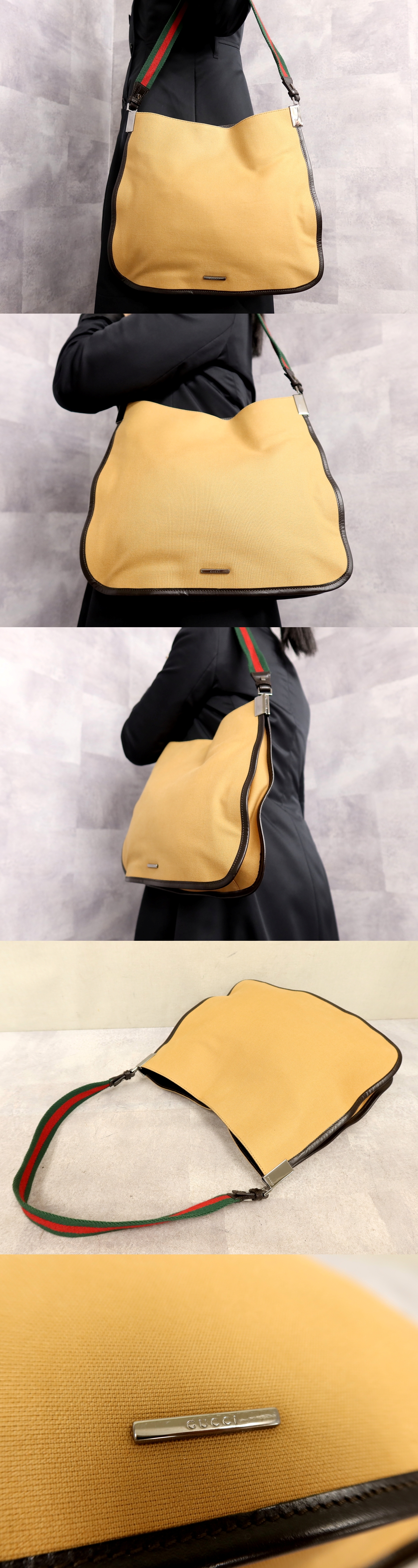 ●超美品●GUCCI グッチ●シェリー●キャンバス カーフ レザー 本革●ショルダー バッグ●ベージュ ダークブラウン●SV金具●収納●Js62046 收藏