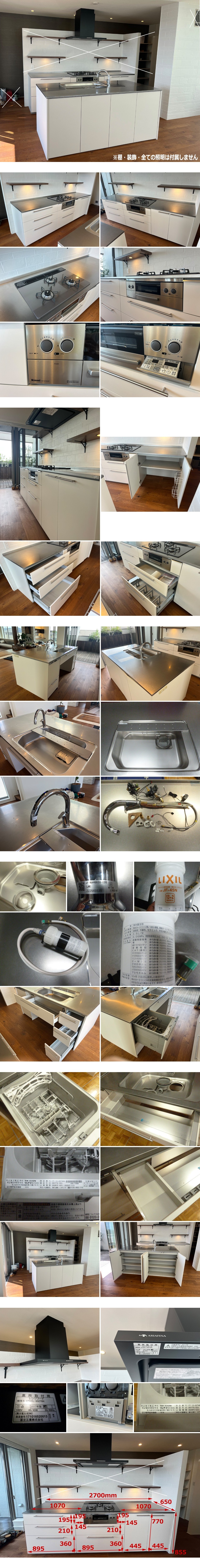 【展示品】EIDAI 永大産業 アイランド システムキッチン&背面コンロカウンター ステンレス天板 都市ガス ビルトインコンロ 食洗機 ファン 收藏
