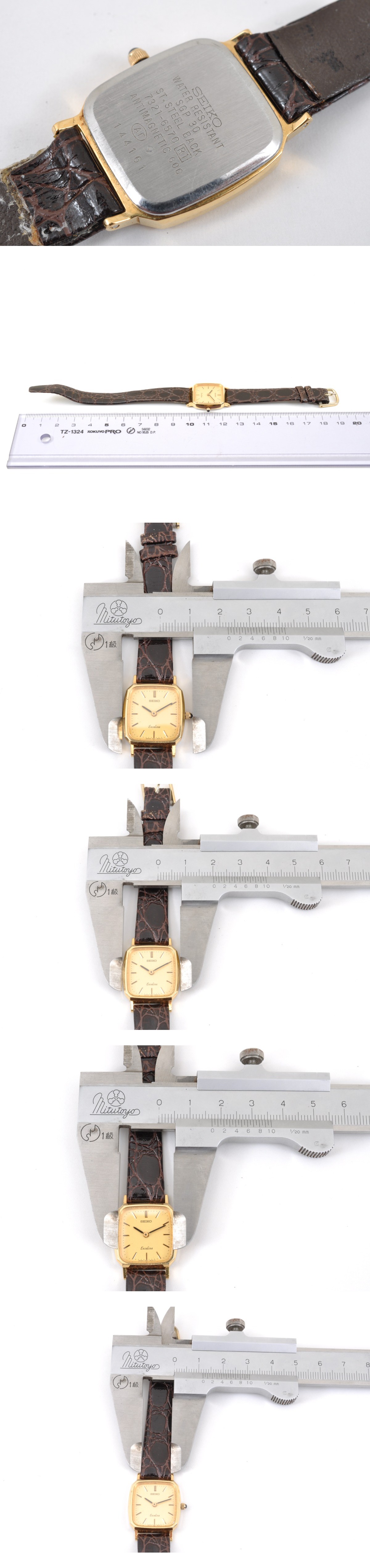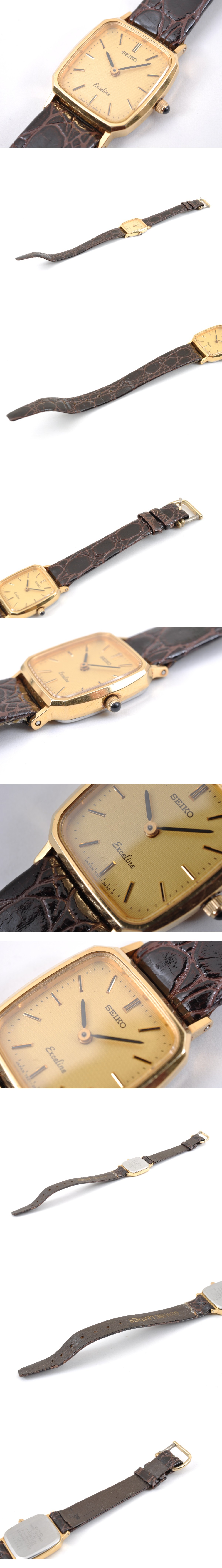 [KAE57]動作品 新品電池交換済 セイコー QZ クォーツ 7321-6570 EXCELINE エクセリーヌ スクエア ゴールド文字盤 腕時計 收藏
