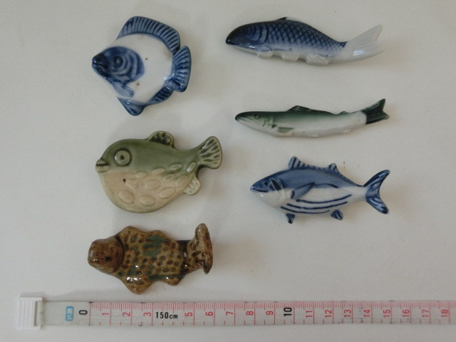 箸置き 魚② 6個 (せともの・瀬戸物・はしおき) 收藏
