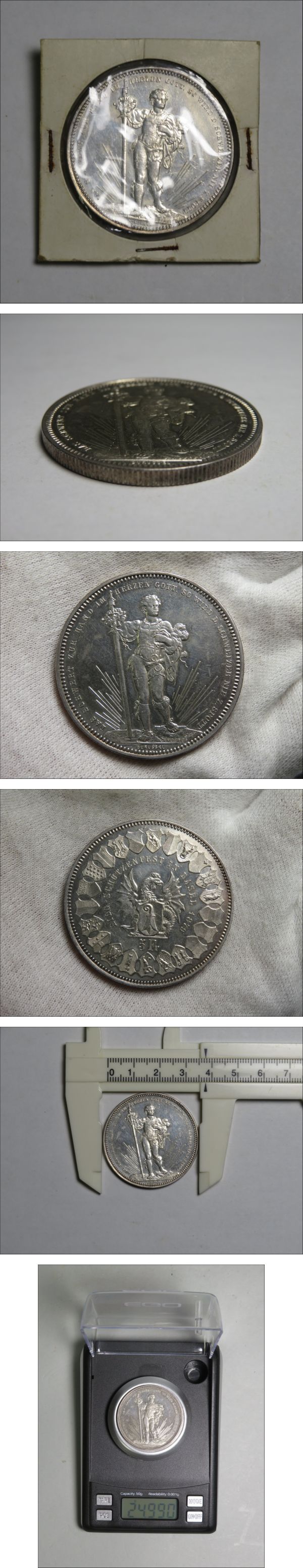 1円スタート 外国古銭 銀貨[Switzerlandスイス バーゼル 射撃祭 大型銀貨 1879年 ベルン 連邦射撃祭 5フラン 1885年]銀貨 硬貨 古銭11015 收藏