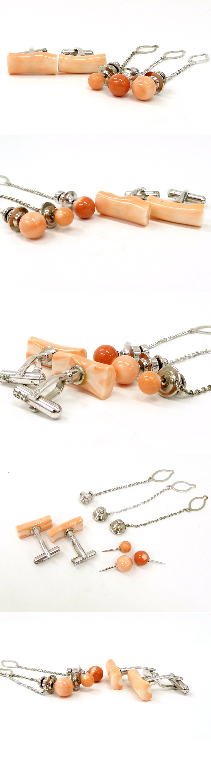 【侍】天然珊瑚 サンゴ オレンジピンク カフス タイタック 4点組 アクセサリー 20-707 收藏