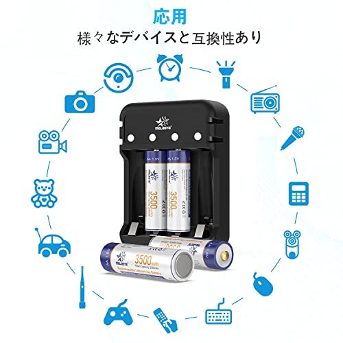 Melasta 1.5V充電池 単3形 充電式 AA リチウム電池 3500mWh×4本入り 充電器付き