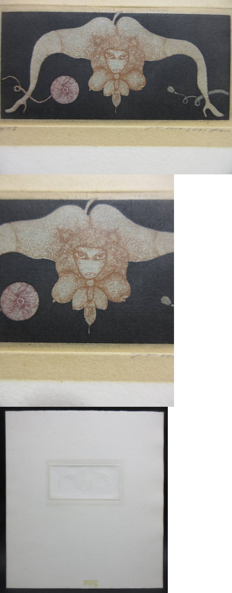 山下清澄 自筆サイン 74/75 銅版画/エッチング 検:三島由紀夫・寺山修司と交流・文化学院美術科卒業・千葉県出身