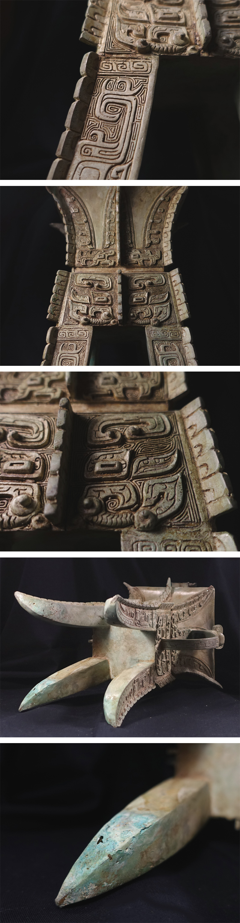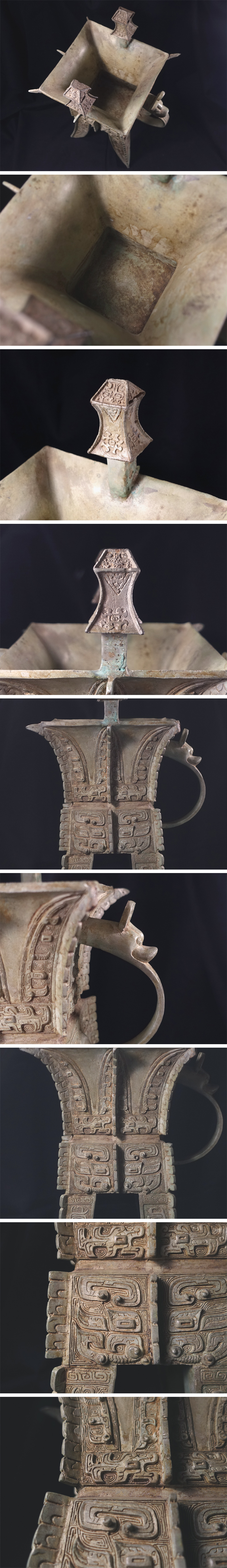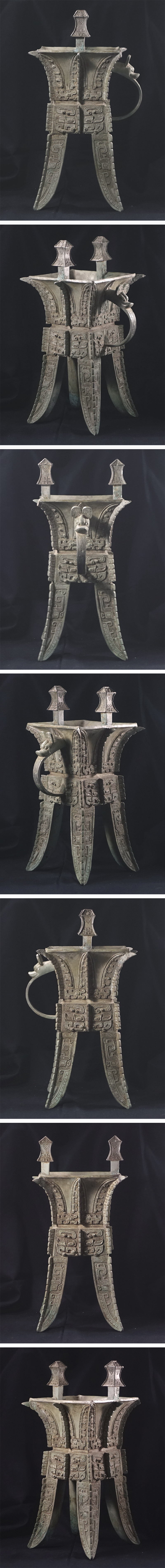 ∇花∇中国高古銅器 紀元前14~前11世紀 殷時代後期 河南省安陽市出土 青銅饕餮文温酒器(カ) 総高36cm 発掘出土品 收藏